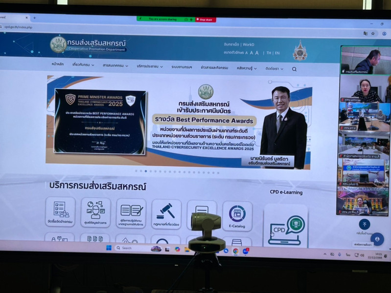 วันที่ 22 ธันวาคม 2568 นายสุรินทร์ วทัญญู ผู้อำนวยการศูนย์เทคโนโลยีสารสนเทศและการสื่อสาร เป็นประธานเปิดการชี้แจงซักซ้อมและทำความเข้าใจการใช้งานระบบรายงานและประเมินความเข้มแข็งสหกรณ์และกลุ่มเกษตรกร ประจำปี 2569 ผ่านระบบ Application Zoom เพื่อชี้แจงการใช้งานระบบดังกล่าว โดยมี นางสาววราลักษณ์ มะลิซ้อน ผู้อำนวยการกลุ่มฐานข้อมูลสารสนเทศ และนายอนุชา แย้มพลาย นักวิชาการคอมพิวเตอร์ชำนาญการพิเศษ และเจ้าหน้าที่ทีjเกี่ยวข้อง ร่วมประชุมชี้แจงเพื่อความเข้าใจและสามารถนำเข้าข้อมูลผ่านระบบและประเมินความเข้มแข็งสหกรณ์และกลุ่มเกษตรกร ประจำปี 2569 รวมทั้งการแนะนำการเก็บข้อมูล และบันทึกข้อมูลผ่านระบบฯ และตอบข้อซักถาม ณ ห้องประชุมศูนย์เทคโนโลยีสารสนเทศและการสื่อสาร กรมส่งเสริมสหกรณ์ เทเวศร์ กรุงเทพมหานคร
